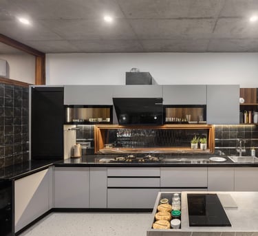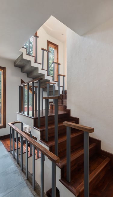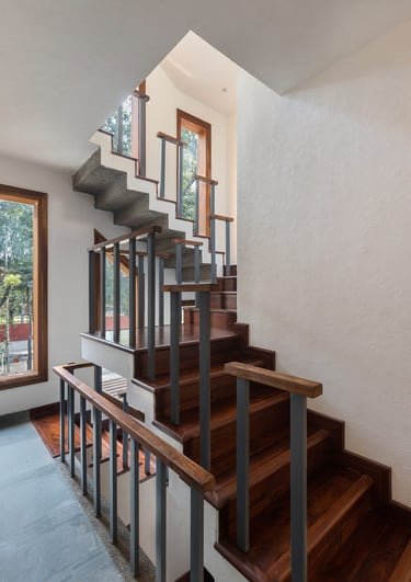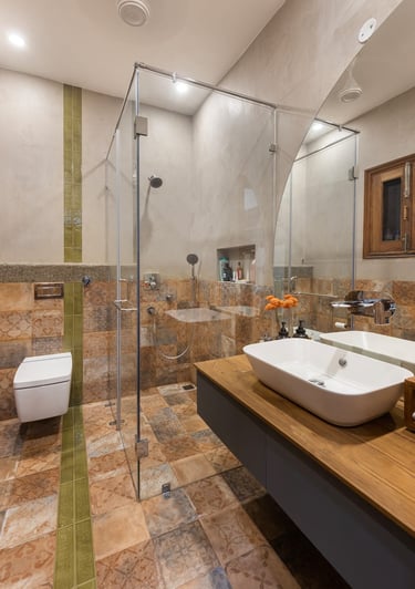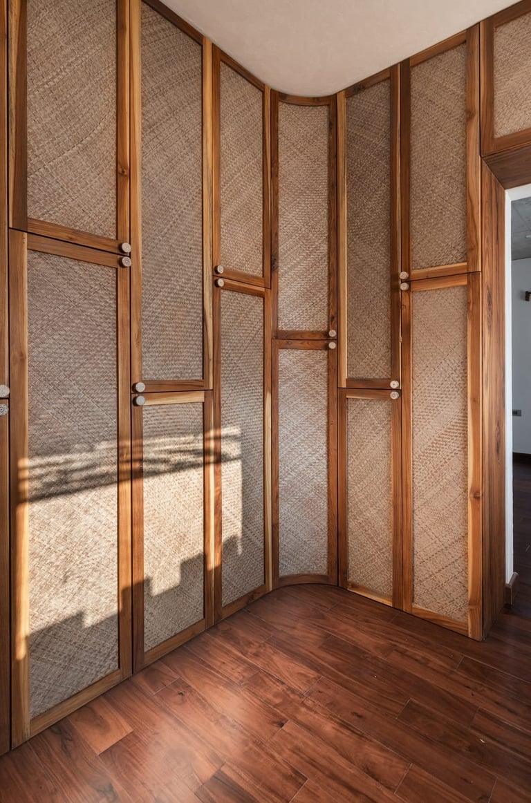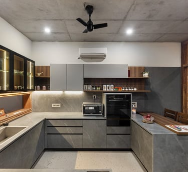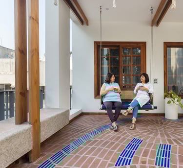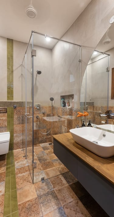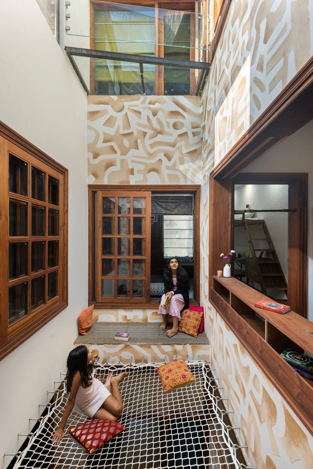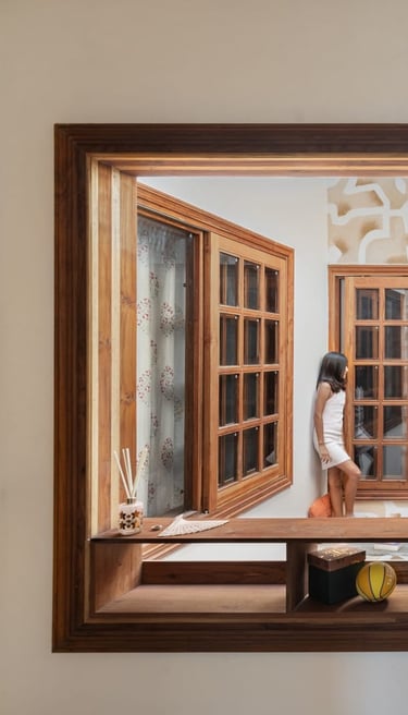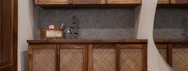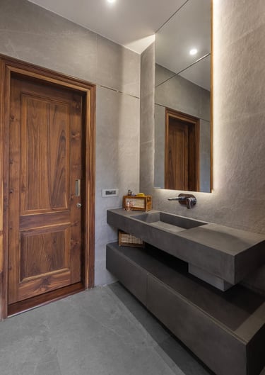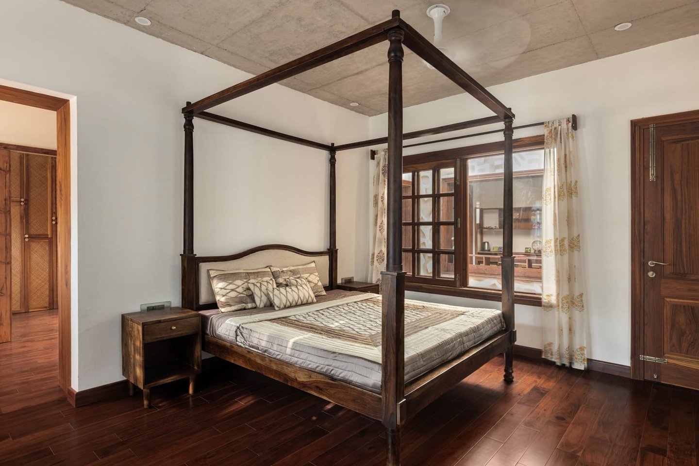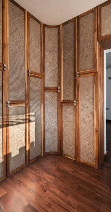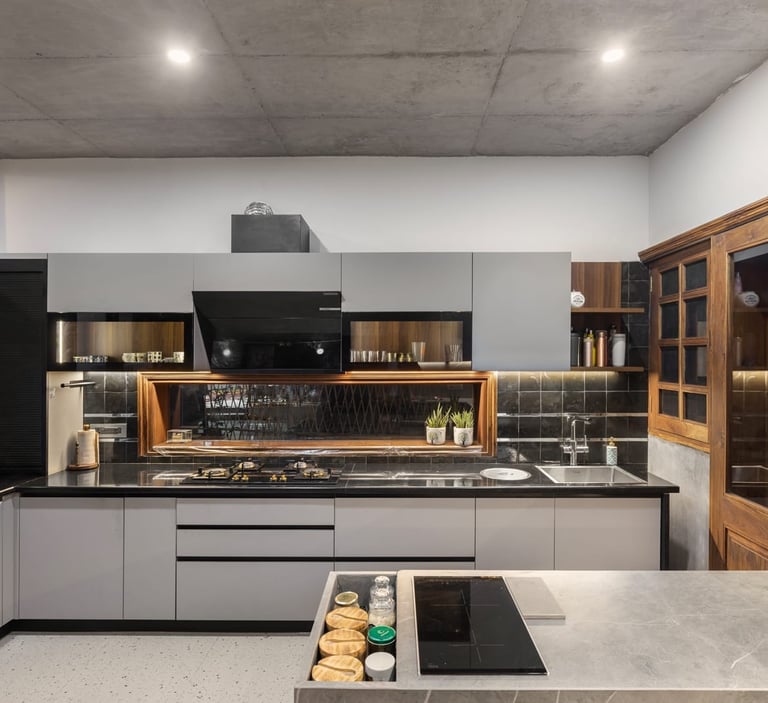 Designed as a serene retreat for septuagenarians, the home embraces earthy materials like wood, stone, jute and rattan, offering warmth and timeless elegance.