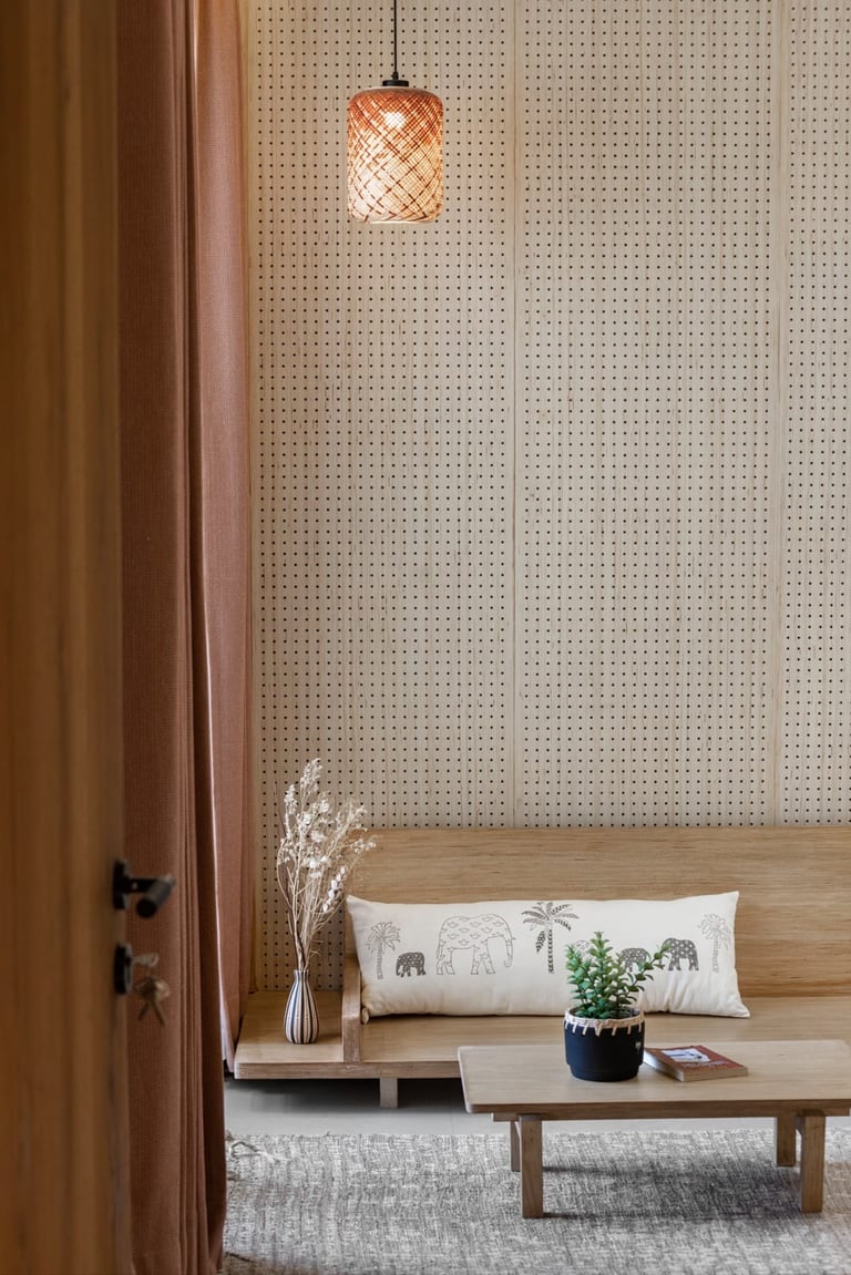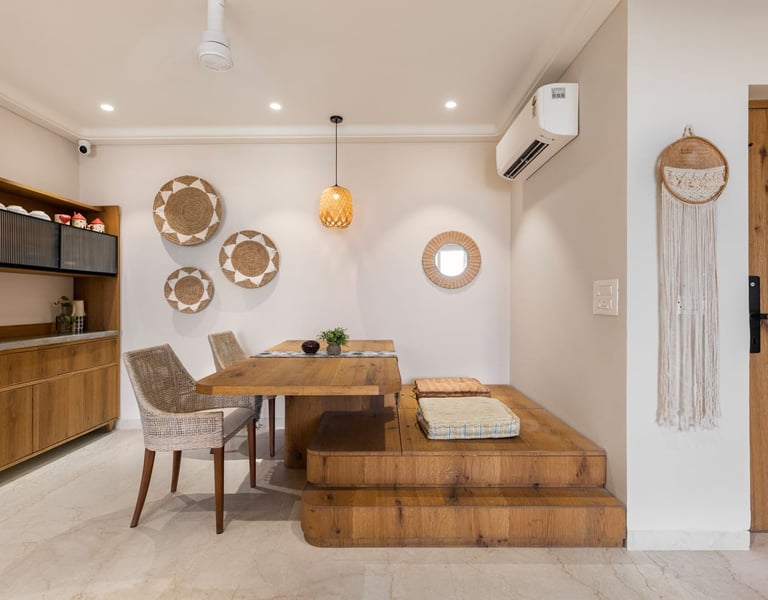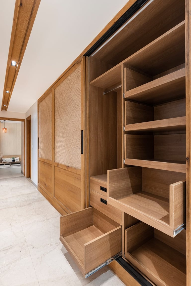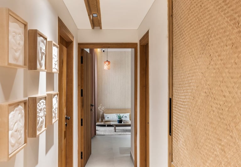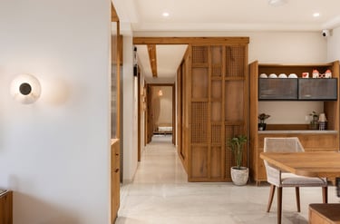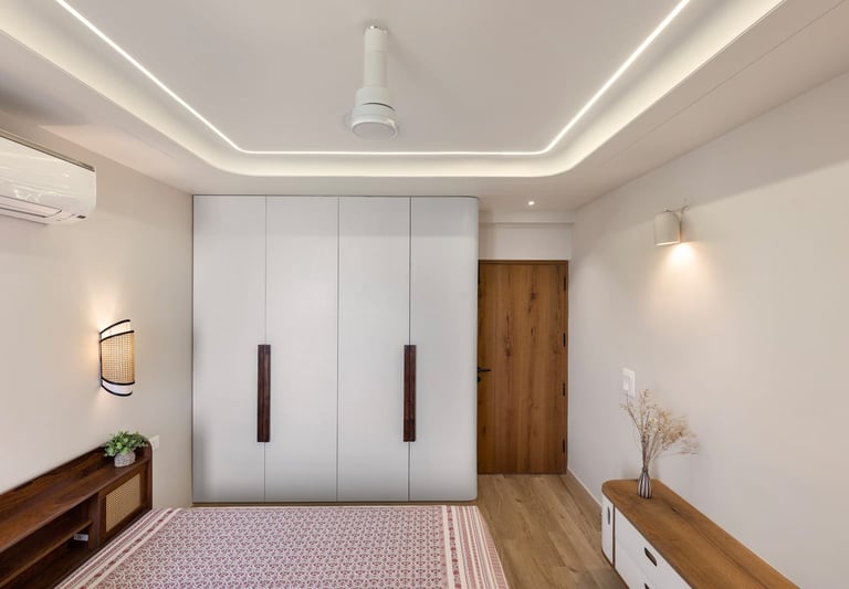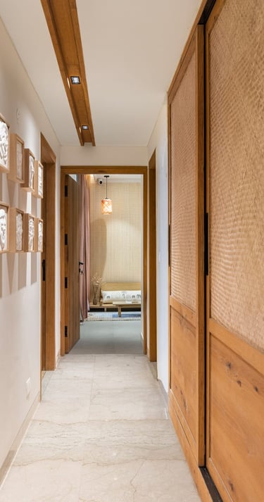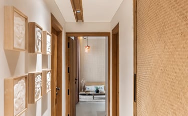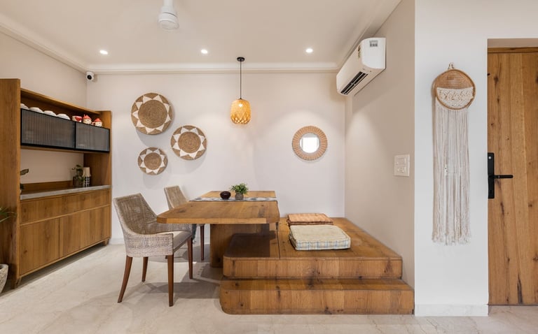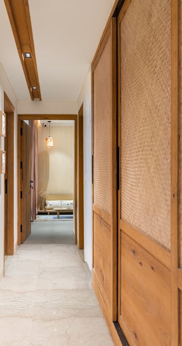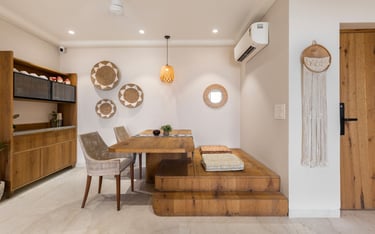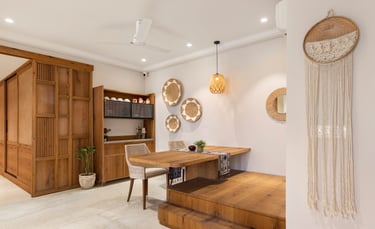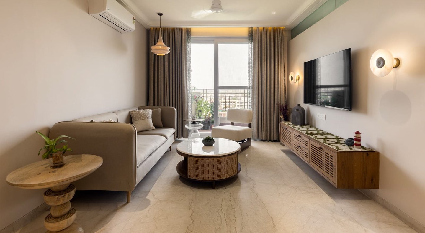 Apartment Kanso is situated in Mohali, Punjab, embodies the journey from a standard apartment to a warm, personalized home. This project draws inspiration from calm minimalism and earthy colour tones, integrating natural textures like rattan, cane, and wood with soft beige and off-white hues to create a serene, clutter-free environment.
