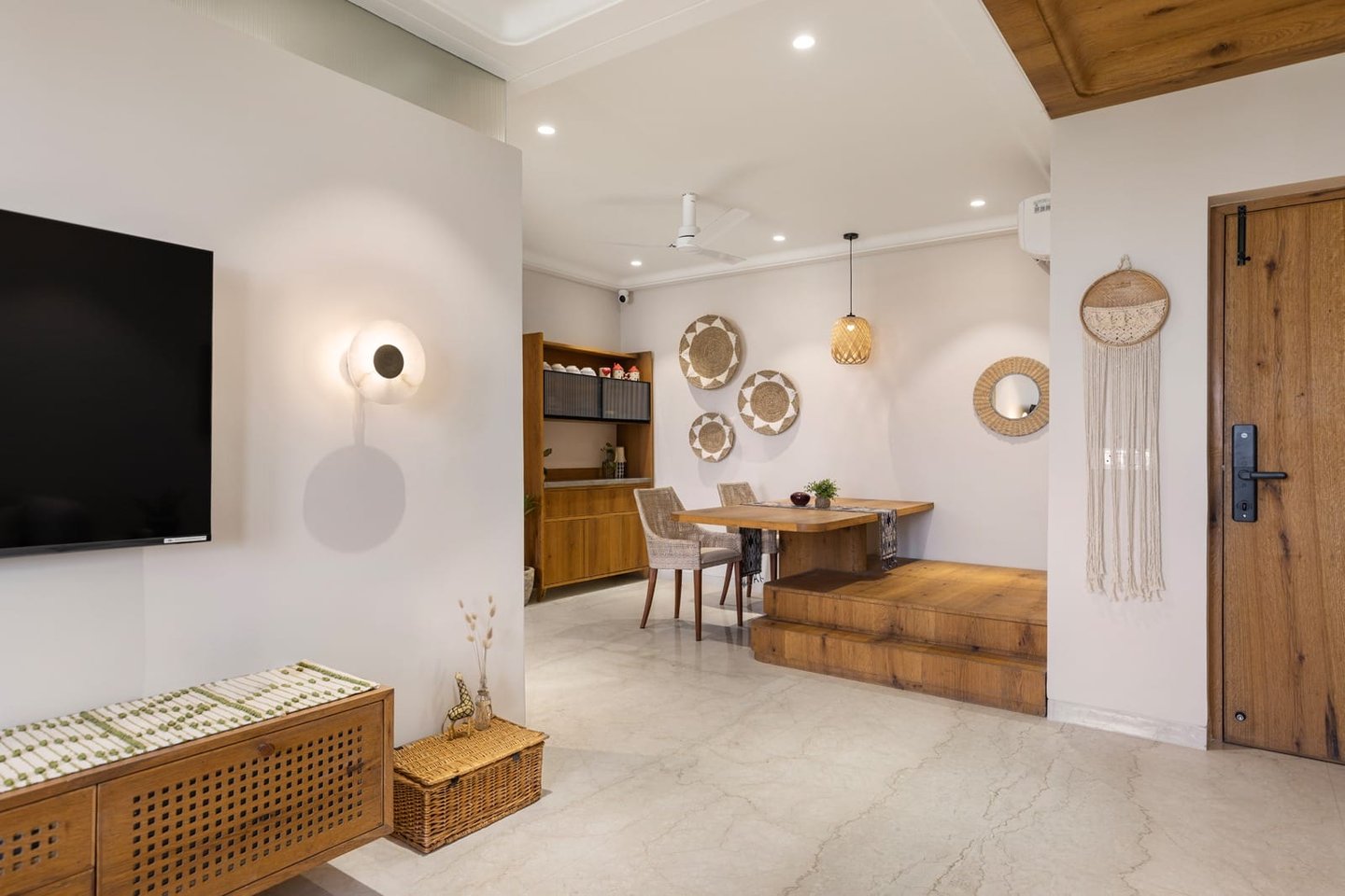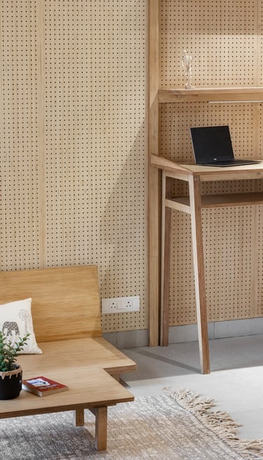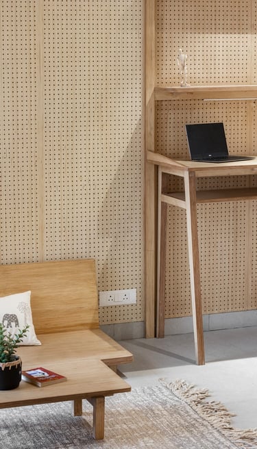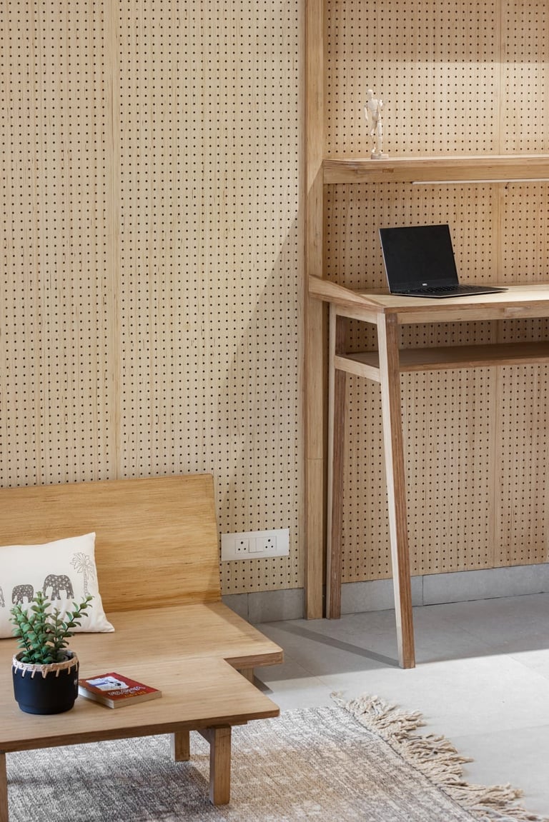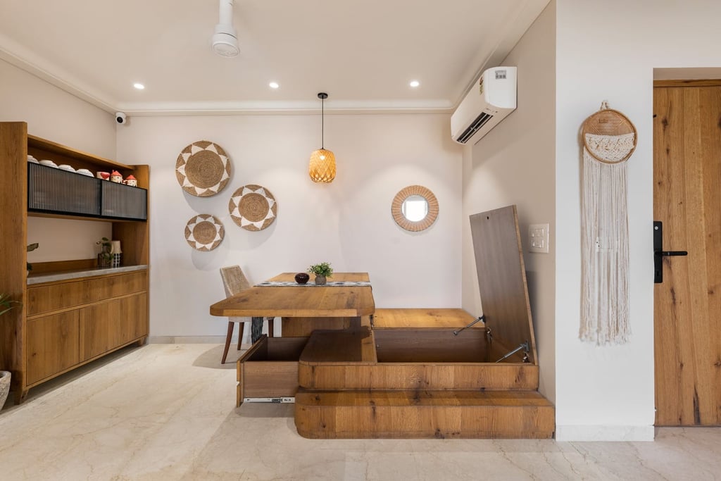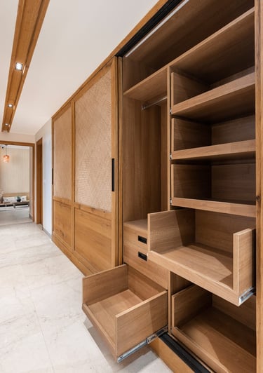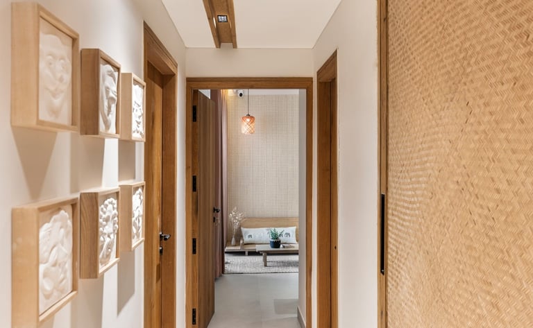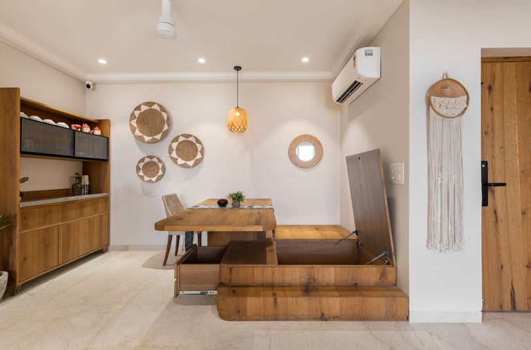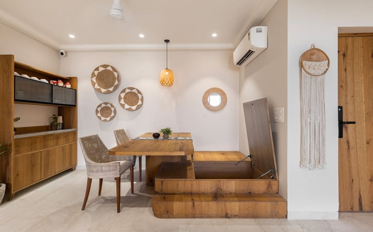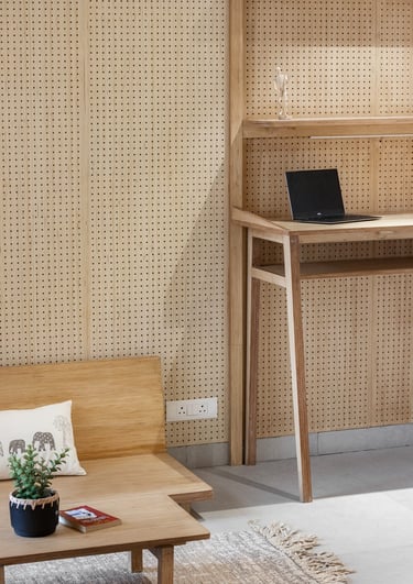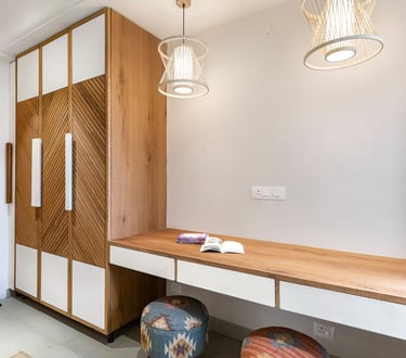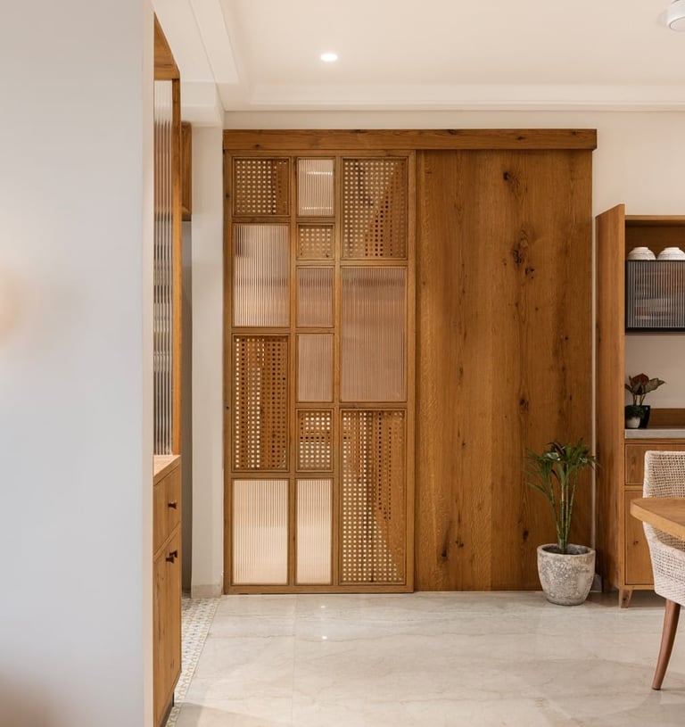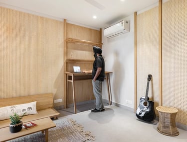 Apartment Kanso is situated in Mohali, Punjab, embodies the journey from a standard apartment to a warm, personalized home. This project draws inspiration from calm minimalism and earthy colour tones, integrating natural textures like rattan, cane, and wood with soft beige and off-white hues to create a serene, clutter-free environment.