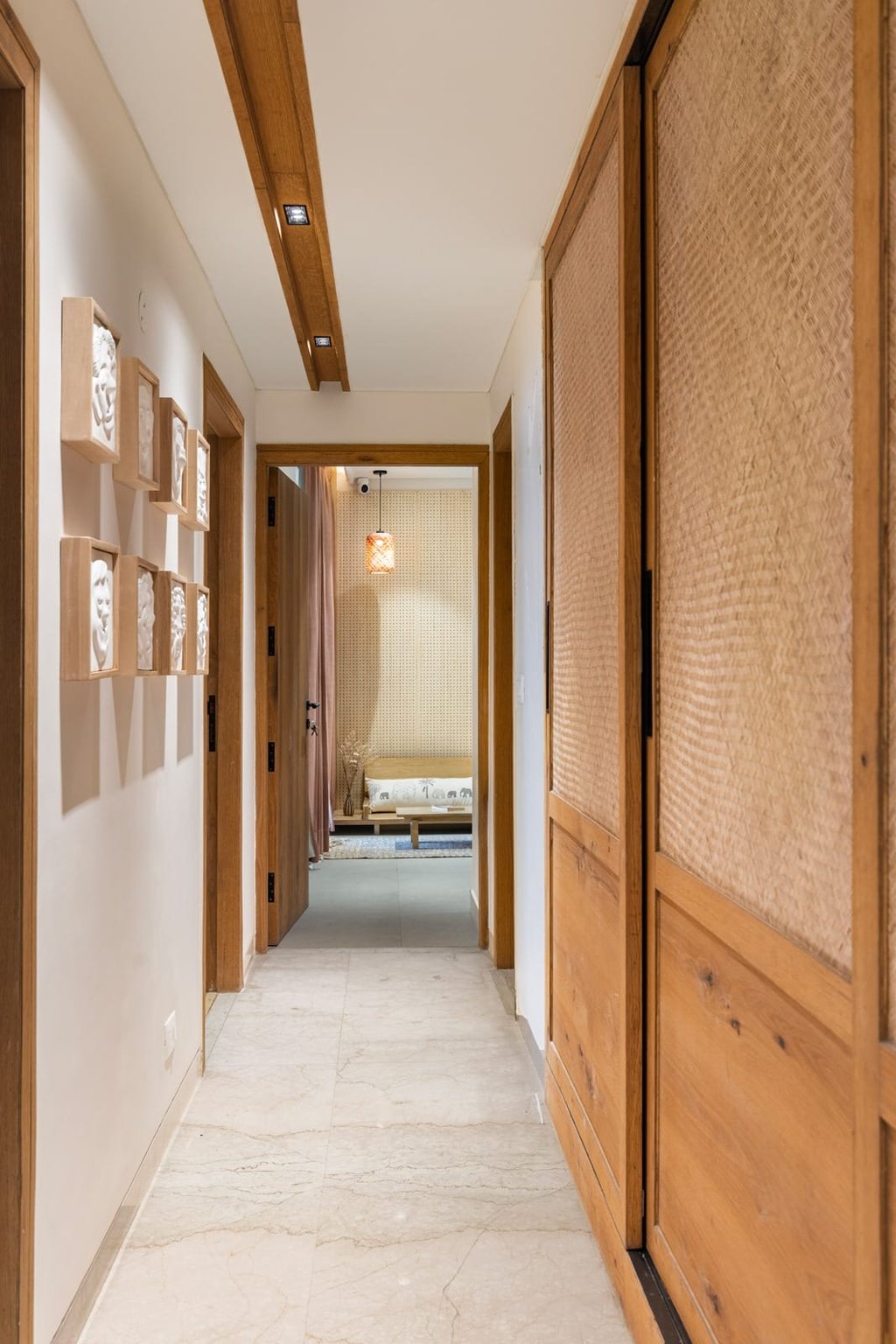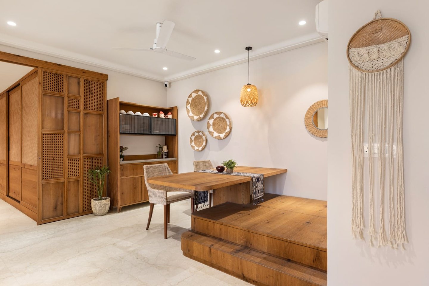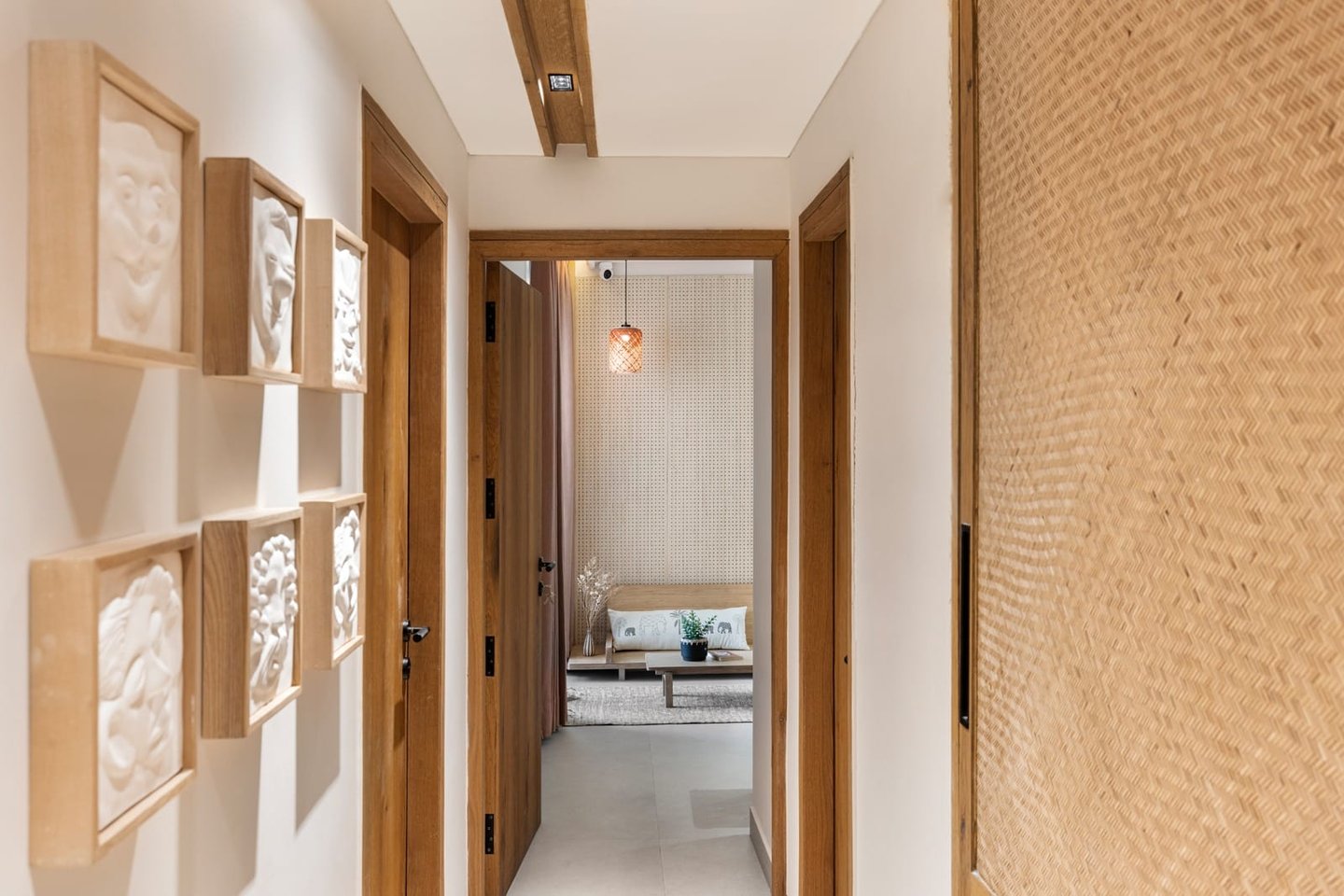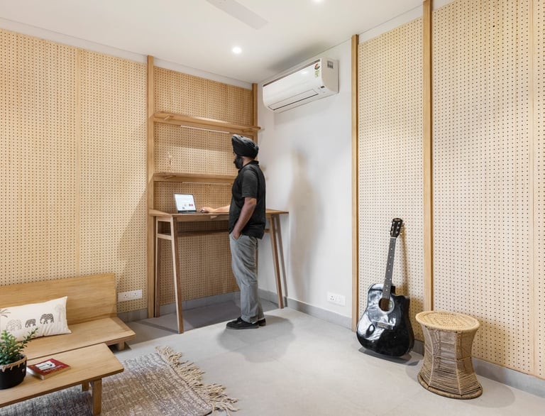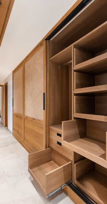 Apartment Kanso is situated in Mohali, Punjab, embodies the journey from a standard apartment to a warm, personalized home. This project draws inspiration from calm minimalism and earthy colour tones, integrating natural textures like rattan, cane, and wood with soft beige and off-white hues to create a serene, clutter-free environment.
