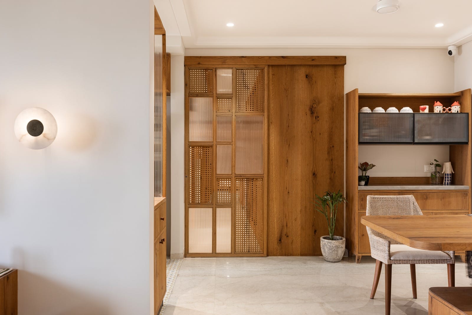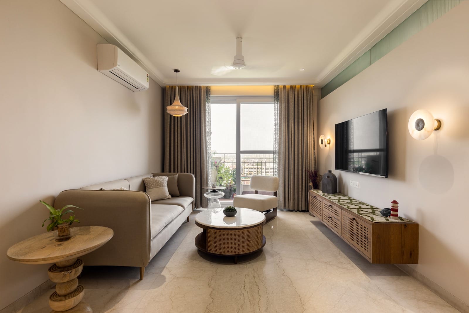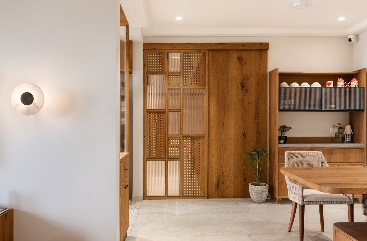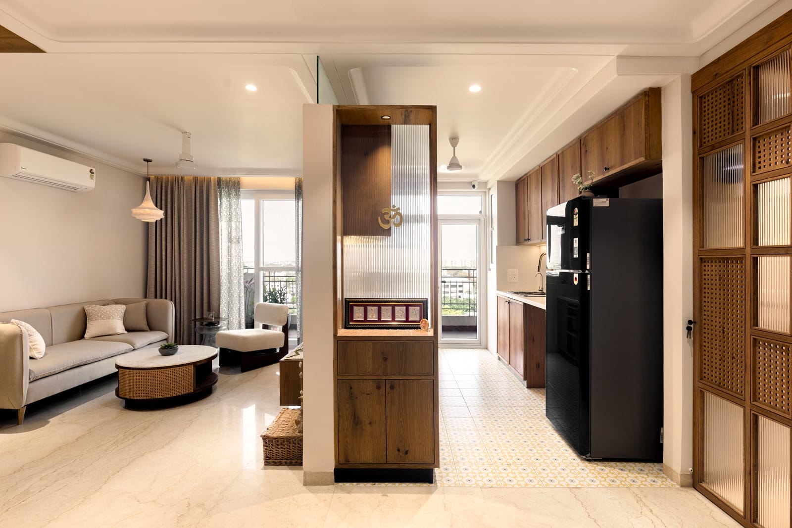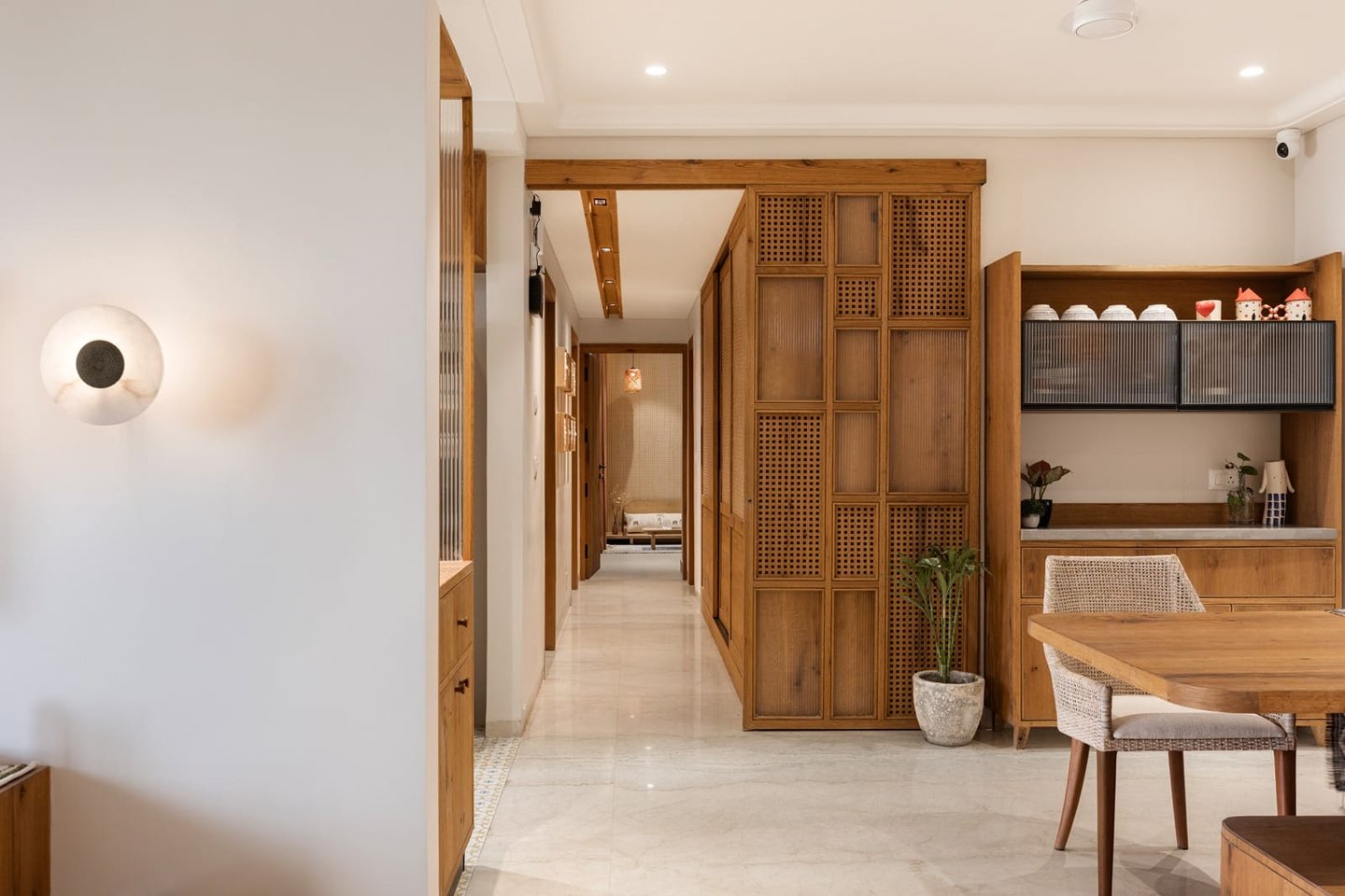 Apartment Kanso is situated in Mohali, Punjab, embodies the journey from a standard apartment to a warm, personalized home. This project draws inspiration from calm minimalism and earthy colour tones, integrating natural textures like rattan, cane, and wood with soft beige and off-white hues to create a serene, clutter-free environment.