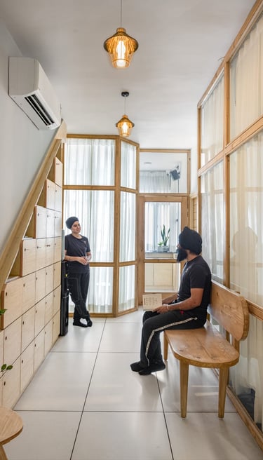 Sabar doesn’t behave like a typical gym. It isn’t the kind of place you rush through. The moment you’re inside, the space shifts your pace, a gentle slowing down. There’s room to move without feeling watched, room to pause without feeling out of place. Light stays soft, corners feel calm, and the space doesn’t ask you to prove anything.